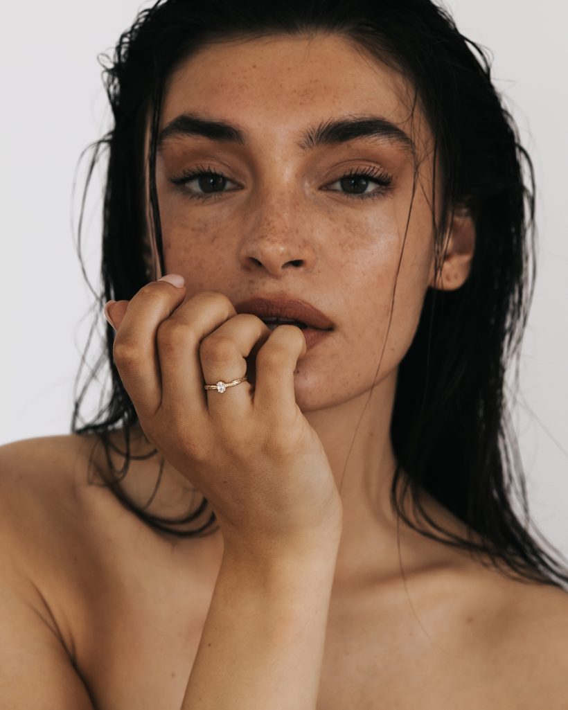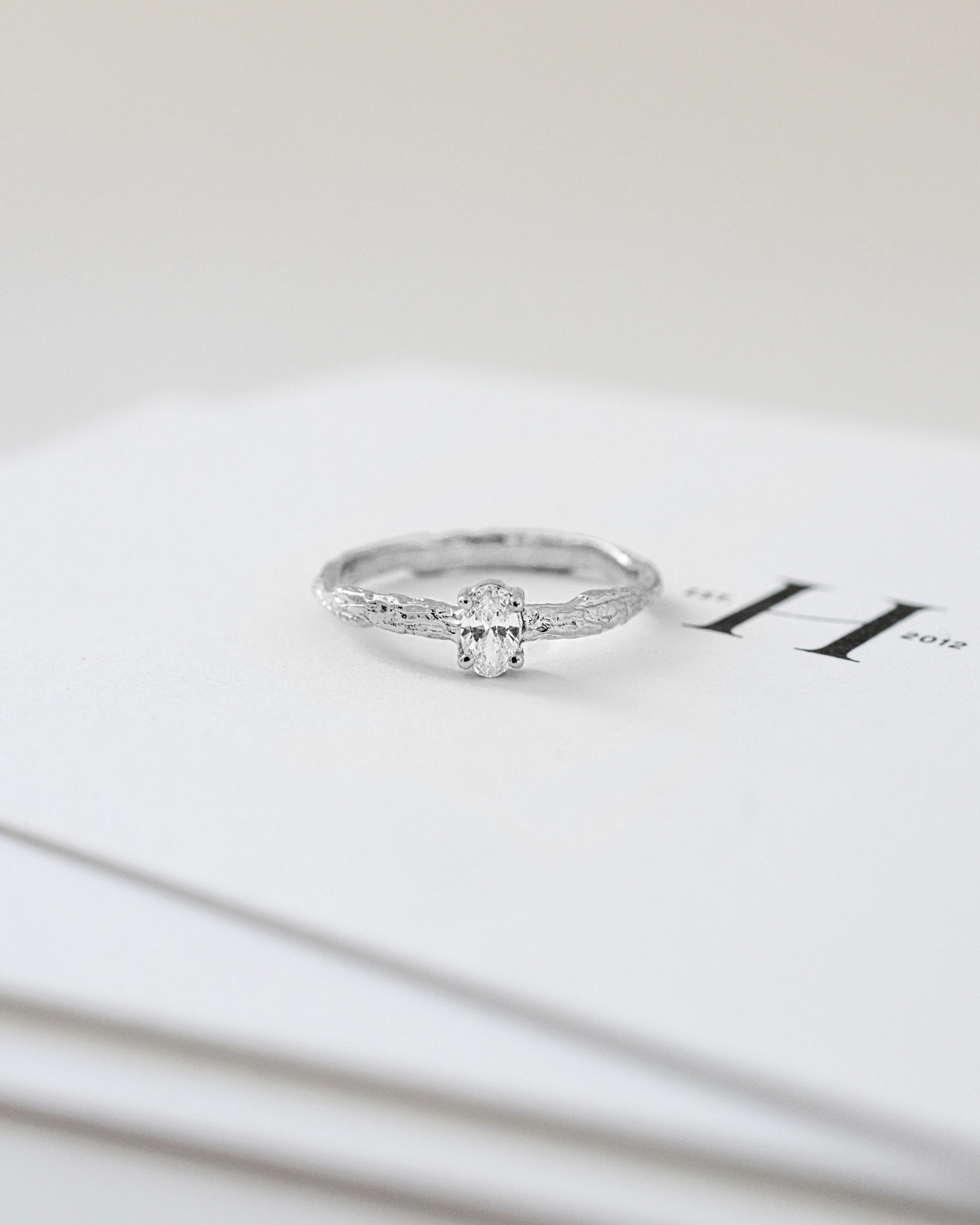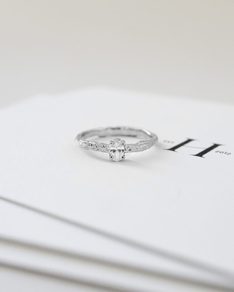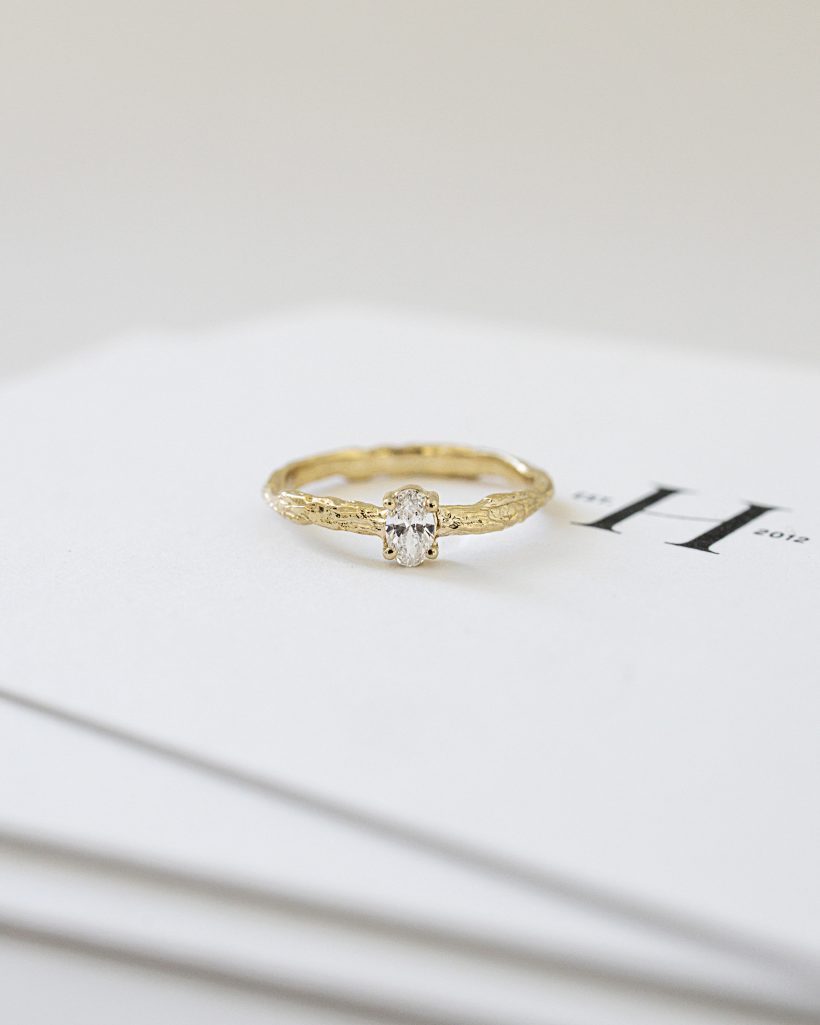 Home » Shop » Biżuteria inspirowana naturą » Gold branch ring with an oval diamond