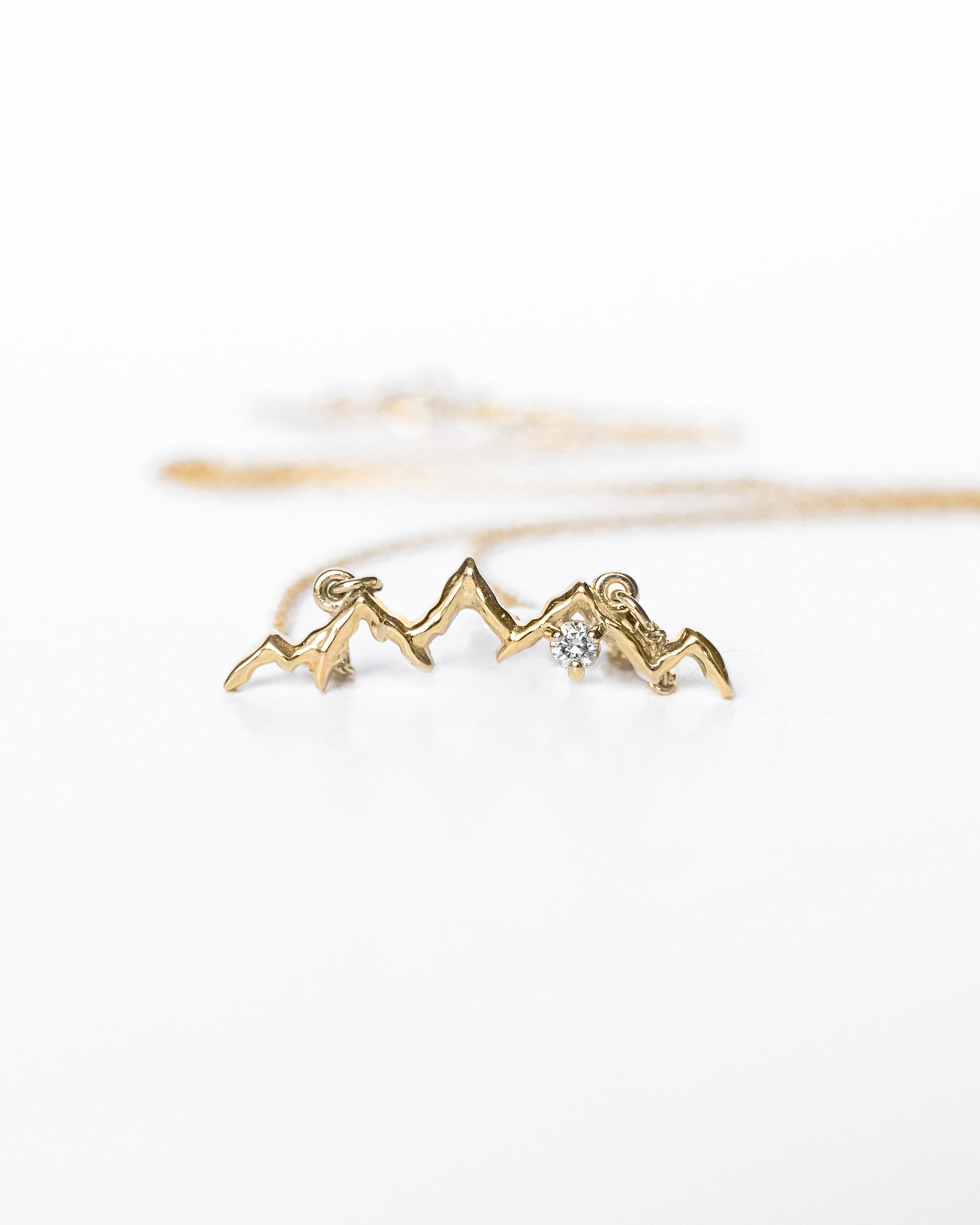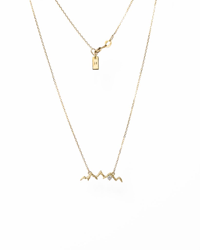 Gold necklace Mountain Panorama with a diamond is not only an effective ornament. It is a necklace that can become a symbol of mountain passion. If you love mountain hiking and want to express your fondness on a daily basis, our mountain jewelry will do just fine. We believe that jewelry signed with the Hilly Sheep logo will become a symbol of love and mountain passion for you.
