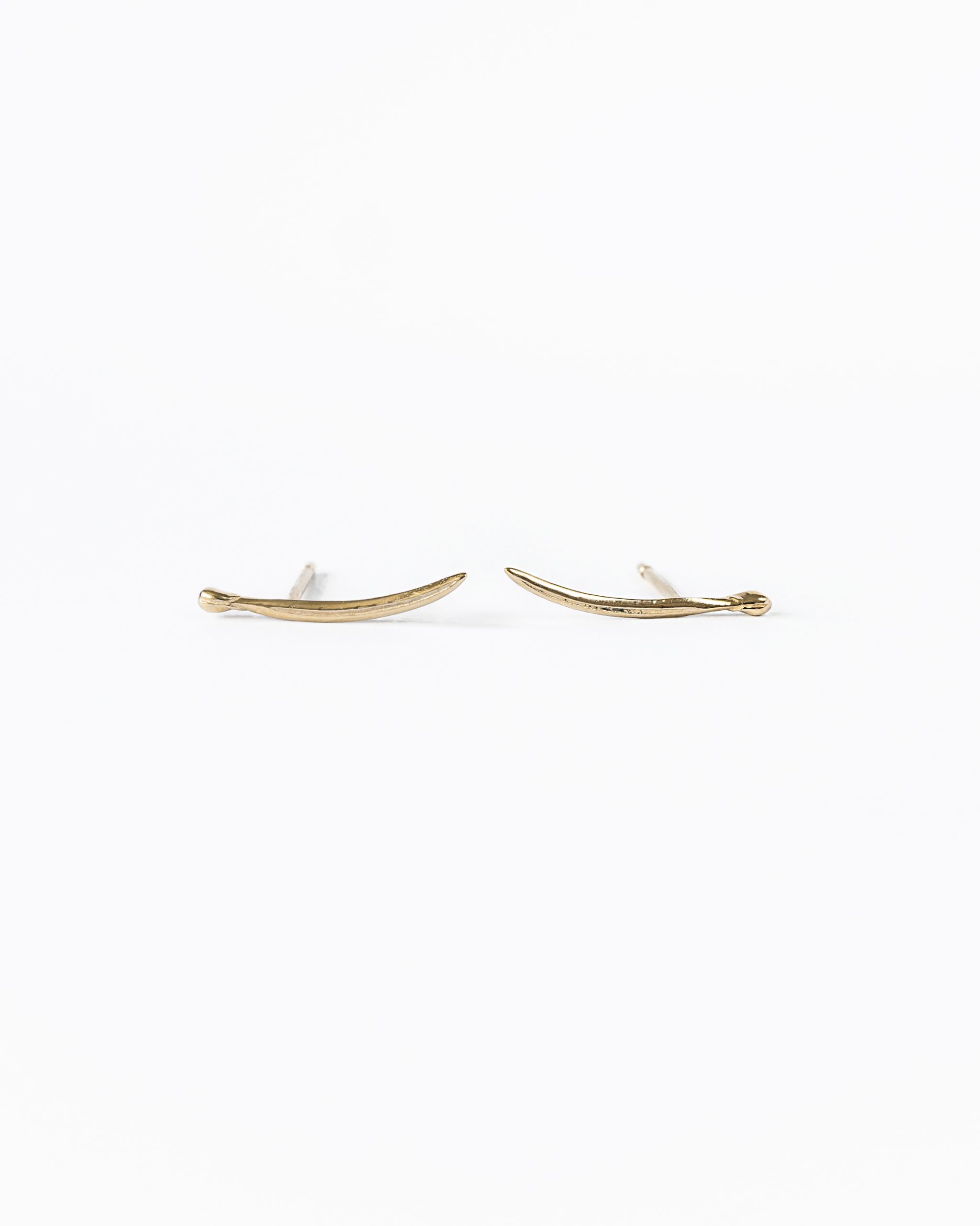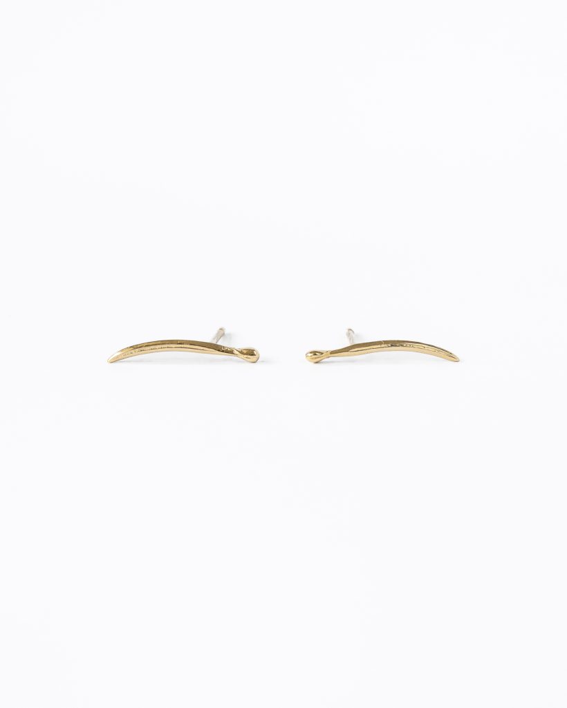 Delicate earrings inspired by nature. The slender form of a spruce needle has been precisely and carefully recreated. The earrings sit beautifully on the ear. Their sleek, organic shape captivates with subtlety and the natural rhythm of the design.