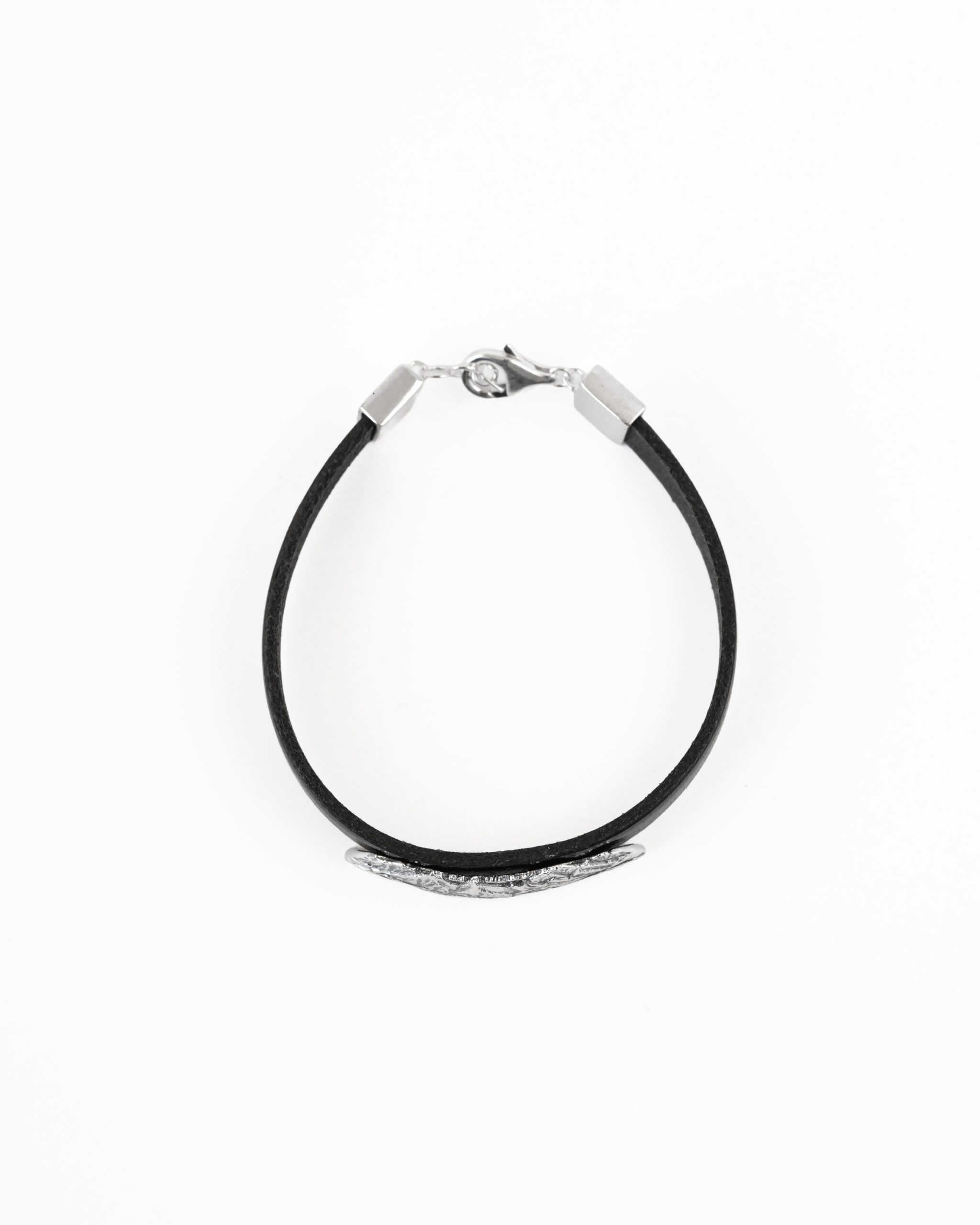 The bracelet is made of natural leather and features a pendant crafted from 925 Sterling Silver.