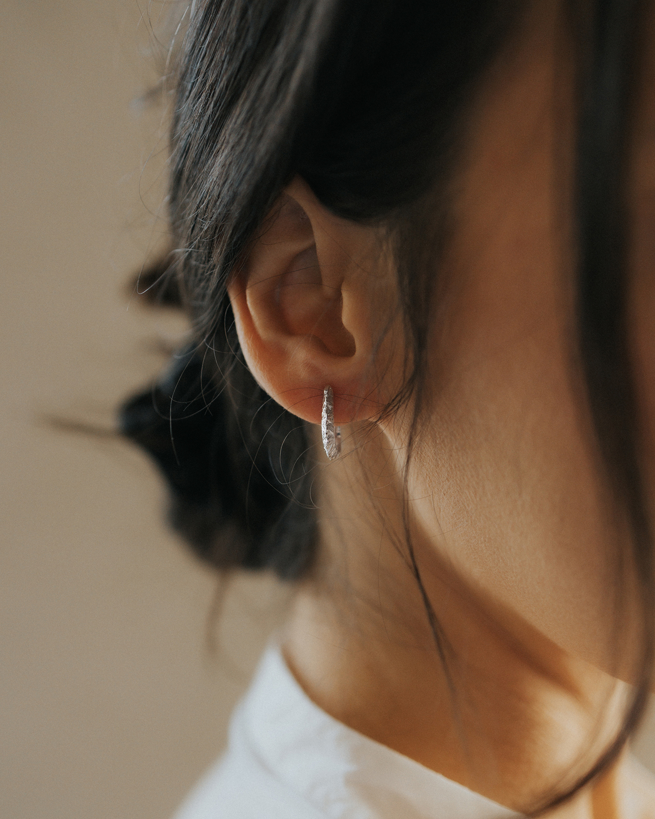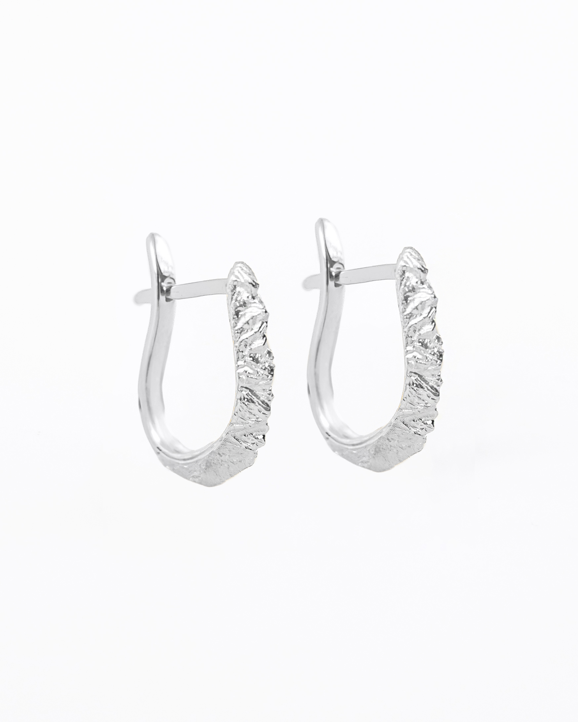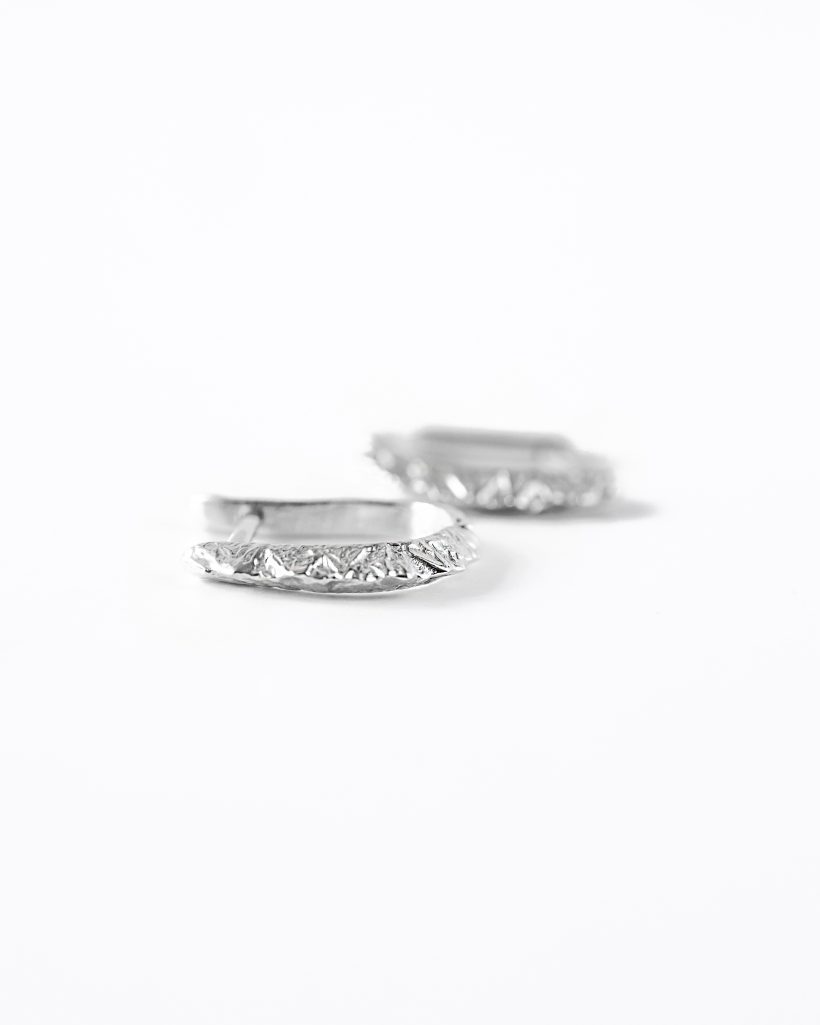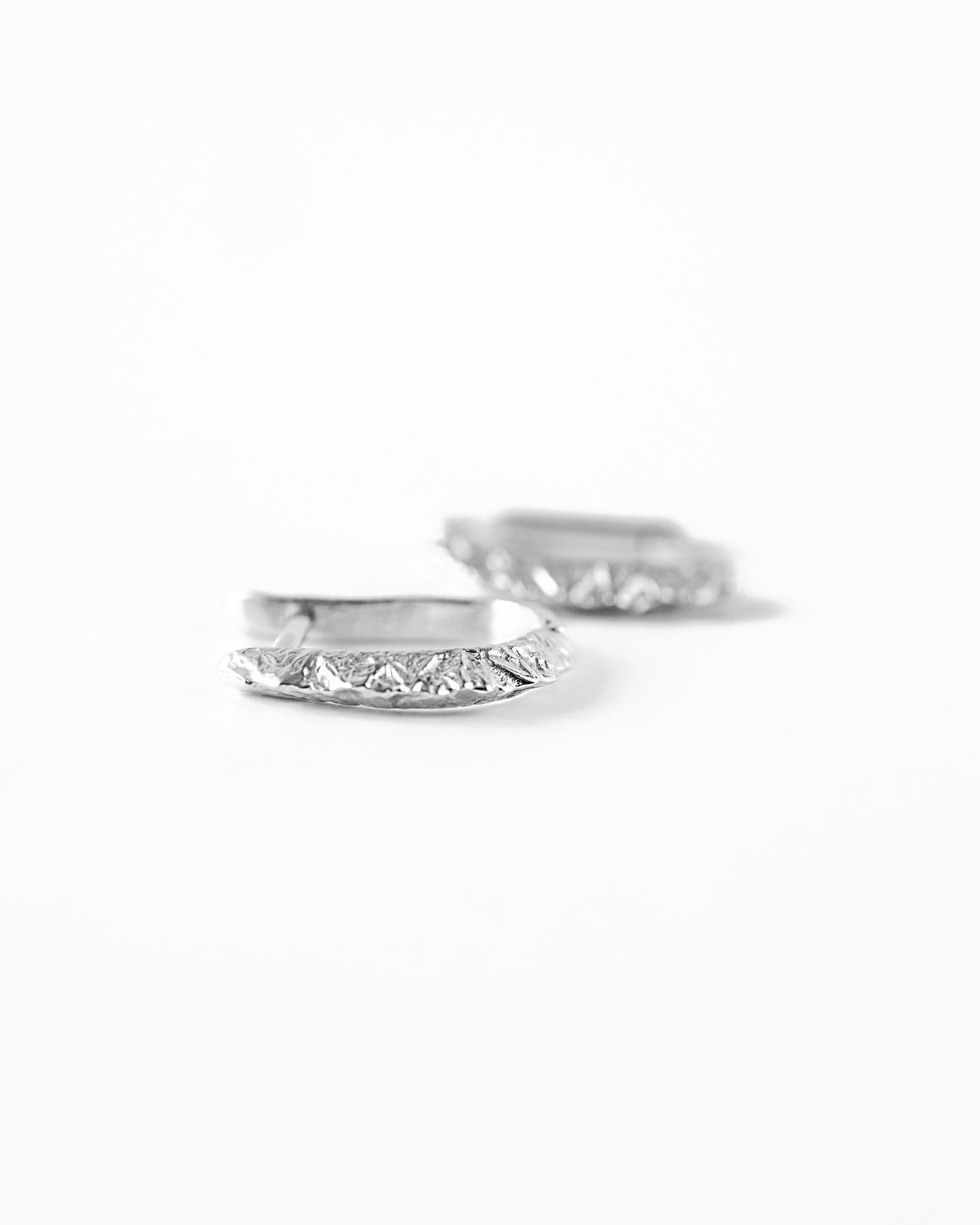 Delicate yet striking earrings adorned with a mountain peak motif, viewed from a bird's-eye perspective. The hand-carved details beautifully reflect light, and their intricate structure is enhanced by polishing, creating the effect of shimmering peaks. The earrings are designed with hook clasps, making them very comfortable to wear.