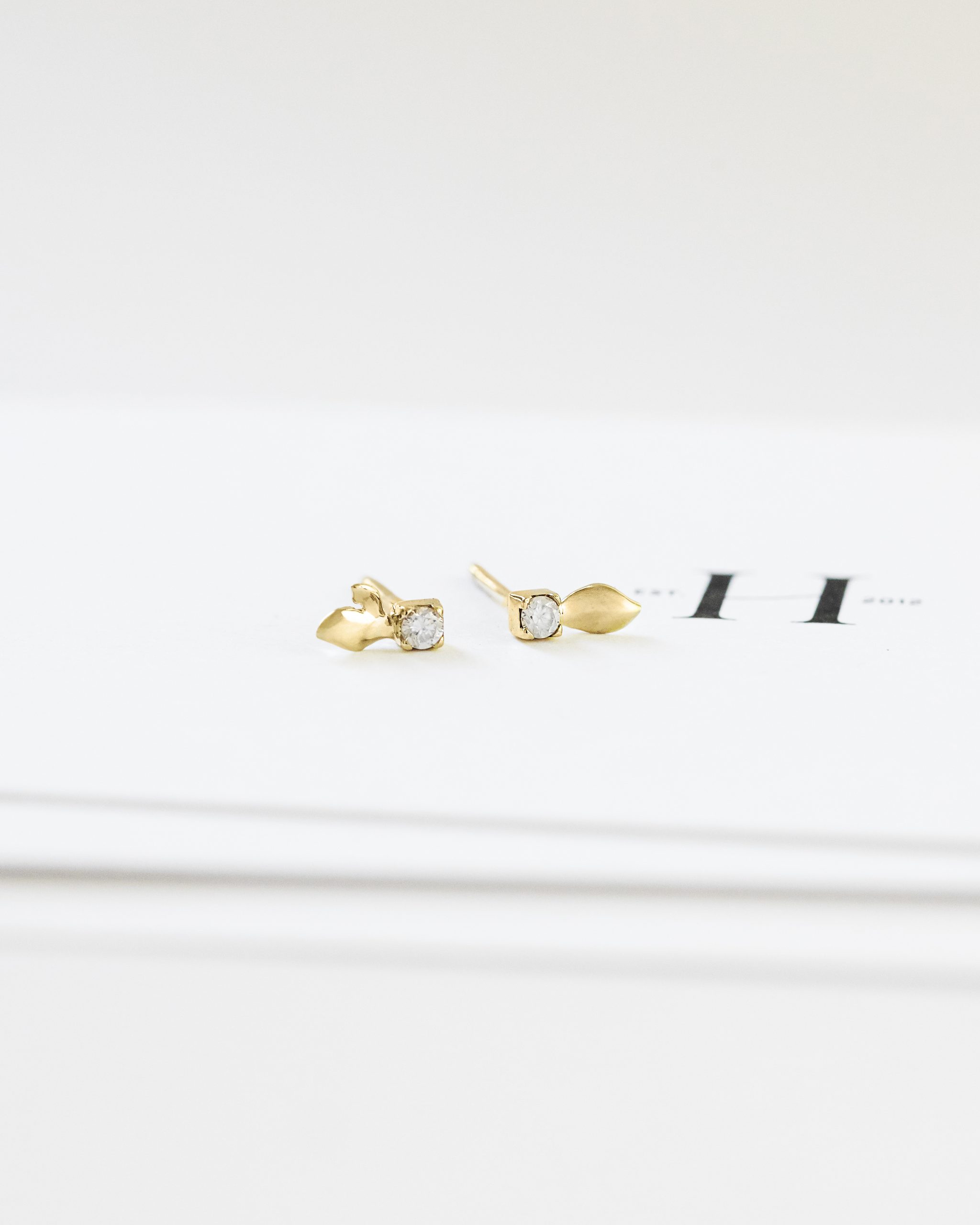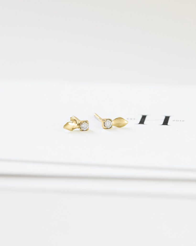 Delikatne kolczyki o organicznej, subtelnie asymetrycznej formie zachwycają naturalnym wdziękiem. Diamenty zakute zostały w oprawie zdobionej ręcznie wyrzeźbionymi motywami płatków pąków. Całość została misternie wypolerowana pięknie odbijając światło, podkreślając blask brylantów.