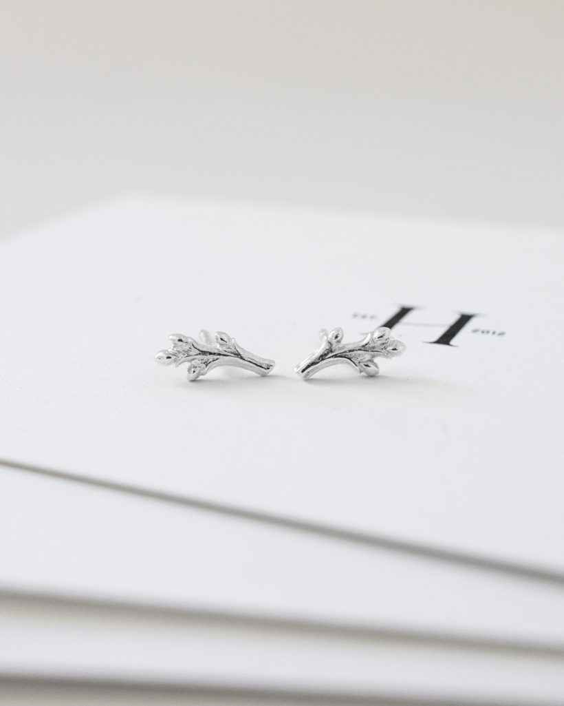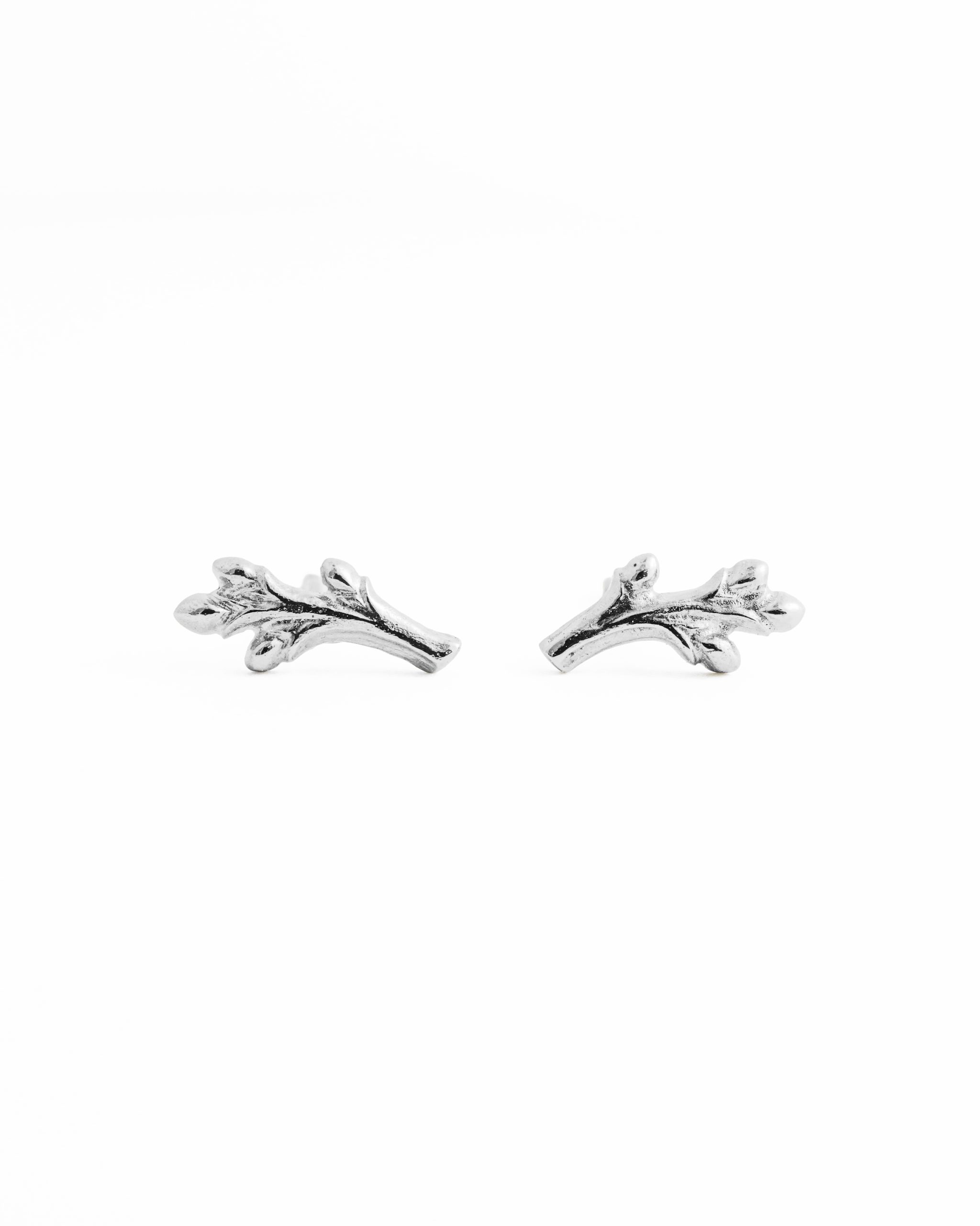 Delikatne kolczyki inspirowane gałązką ozdobioną młodymi pączkami zachwycają subtelną formą i naturalnym wdziękiem. Smukłe, ręcznie rzeźbione linie metalu tworzą lekką i harmonijną kompozycję, delikatnie układając się na uchu. Misternie rozmieszczone pączki wzdłuż gałązki nadają całości świeżości oraz eleganckiego charakteru.