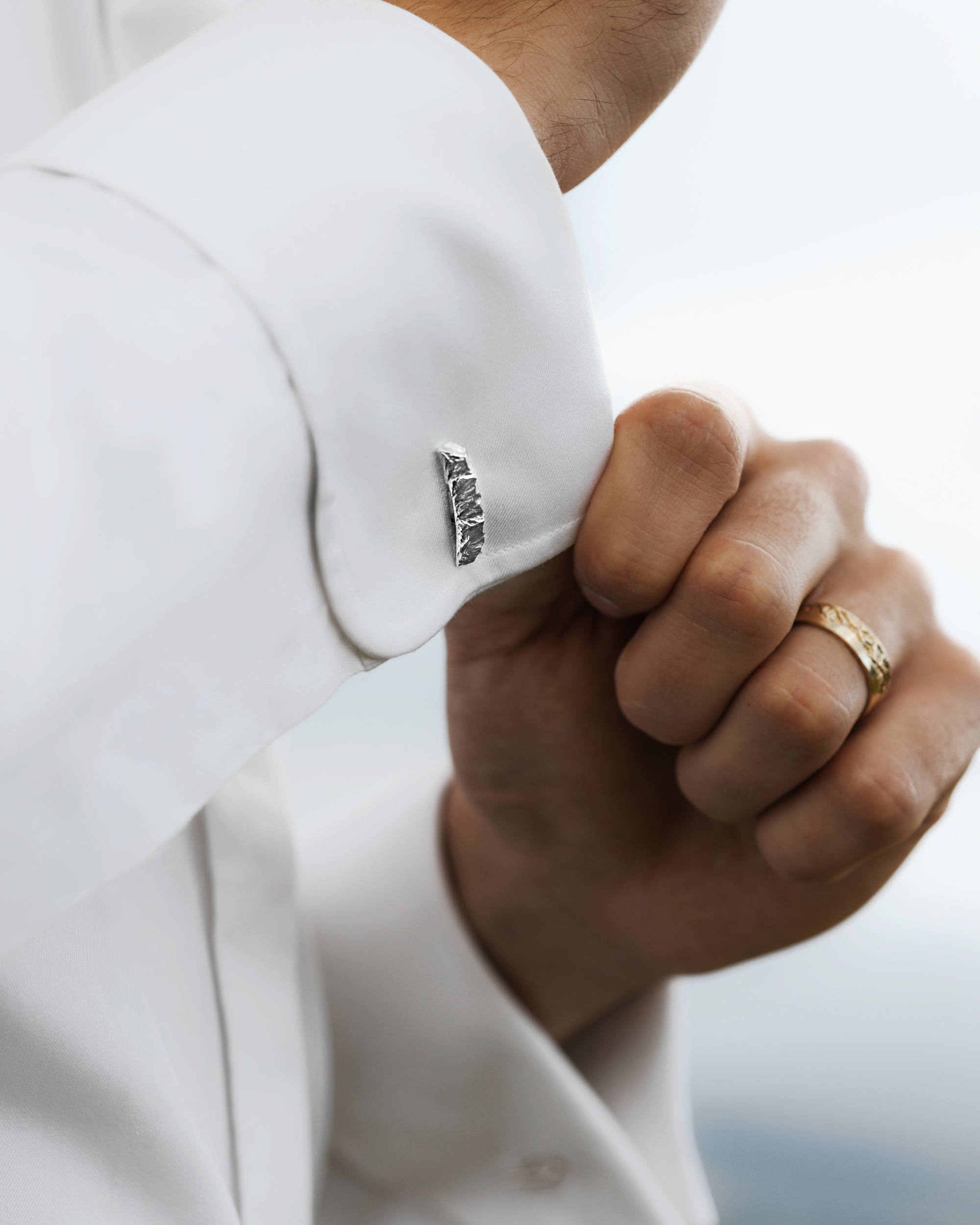 Srebrne spinki do mankietów inspirowane linią turni widzianych z lotu ptaka. Ręcznie rzeźbiony detal z niezwykłą precyzją oddaje majestatyczny krajobraz najwyższych szczytów.