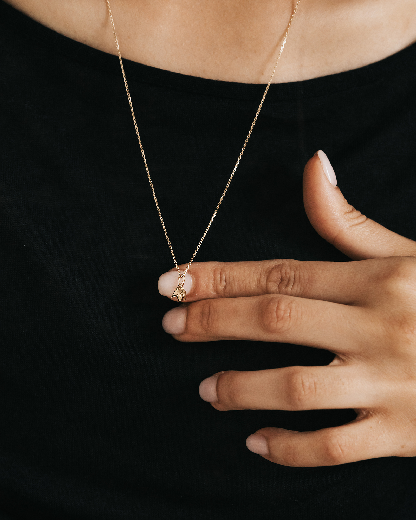 Delikatny naszyjnik z zawieszką inspirowaną pączkiem kwiatu zachwyca subtelną formą i naturalnym wdziękiem. Ręcznie rzeźbiona zawieszka oddaje lekkość budzącej się do życia natury. Starannie dopracowane detale oraz szlachetna forma sprawiają, że naszyjnik pięknie odbija światło.
